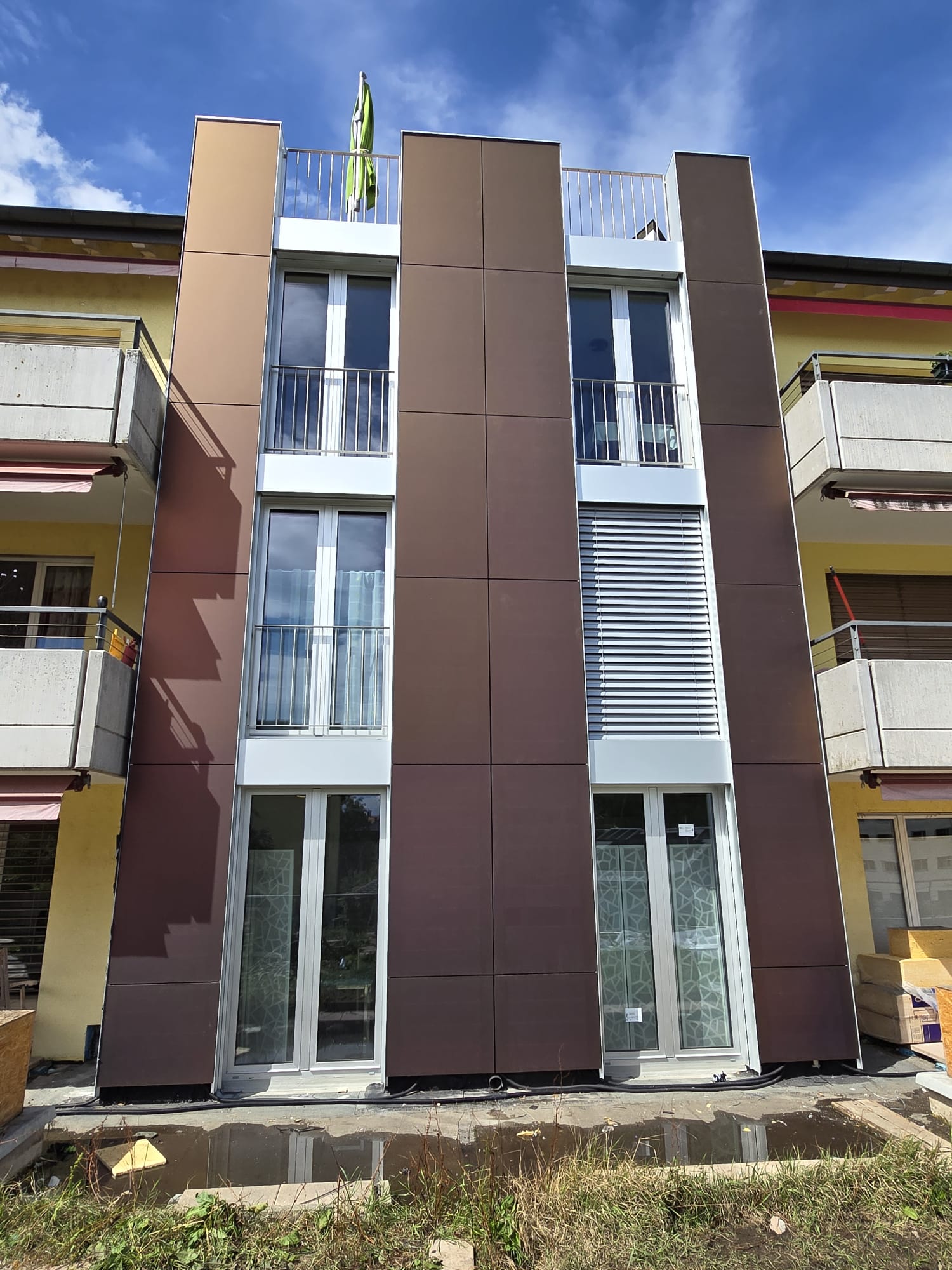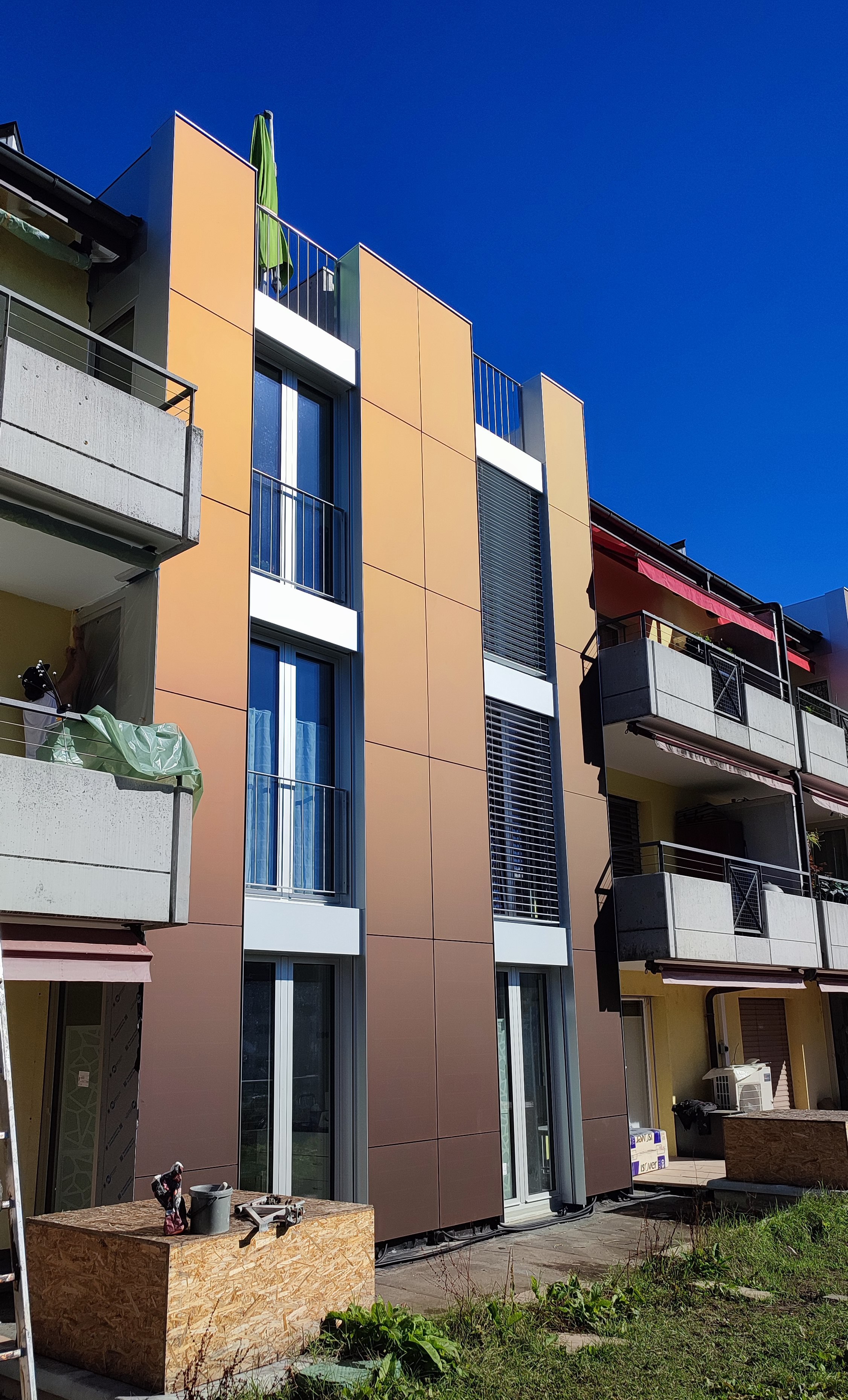 - Prestations executées: Façade, fenêtres et supports pour panneaux solaires,